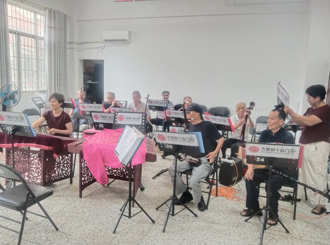 图为村里老人在中心弹奏十音八乐,丰富晚年生活。 8月25日,记者走进东庄镇大象村嵌入式养老服务中心,只见整体环境整洁有序,功能分区清晰明了。一层为公共场所,设有村卫生所、十音八乐训练室、台球区、乒乓球区。二至四层为住养房,包含日间照料午休用房,并设有麻将桌、棋牌桌等。记者看到,住养房间布置简约实用,床铺、电视、空调等生活设施配备齐全,应急呼叫器安装在床头显眼位置,细节处尽显对老年群体的关怀。另外一侧的配套食堂干净明亮,操作间厨具摆放规整,墙上的公示栏里贴着本周食谱,各种菜品清晰列明,兼顾营养与口味。