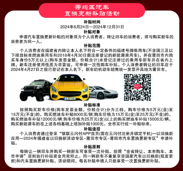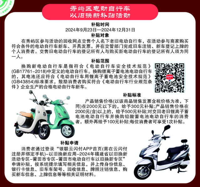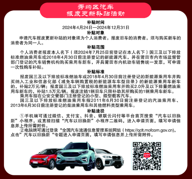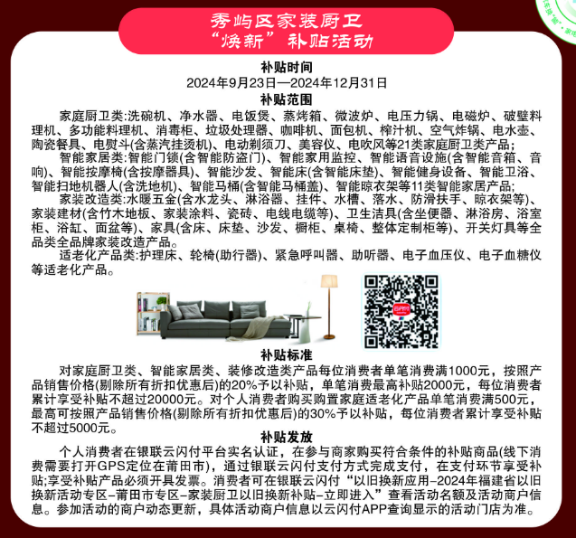 秀屿区消费品以旧换新活动开始了!