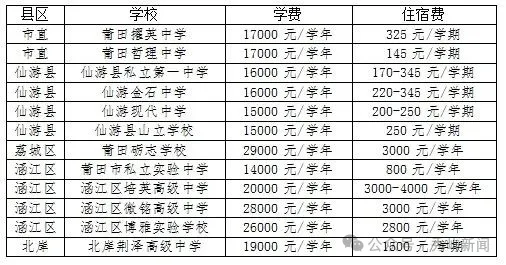 2025—2026年莆田市民办高中学校收费项目和收费标准