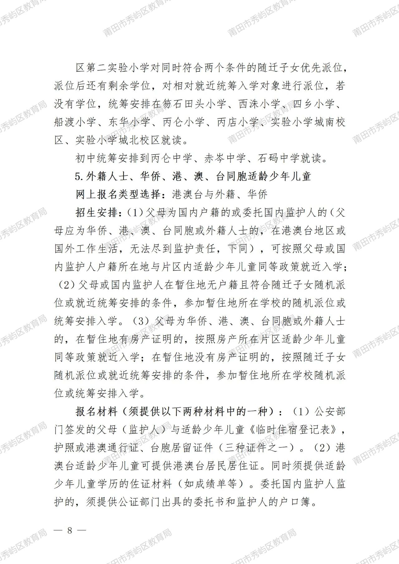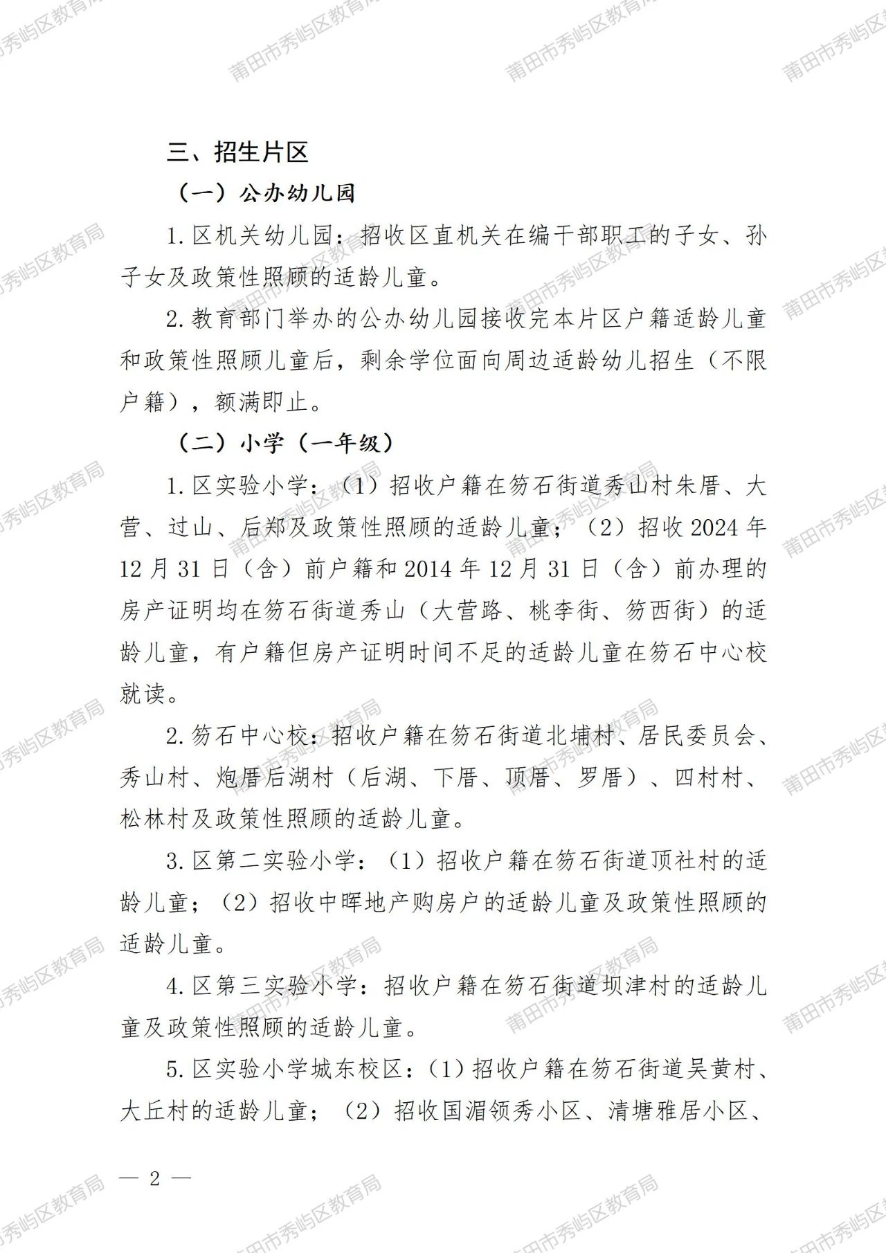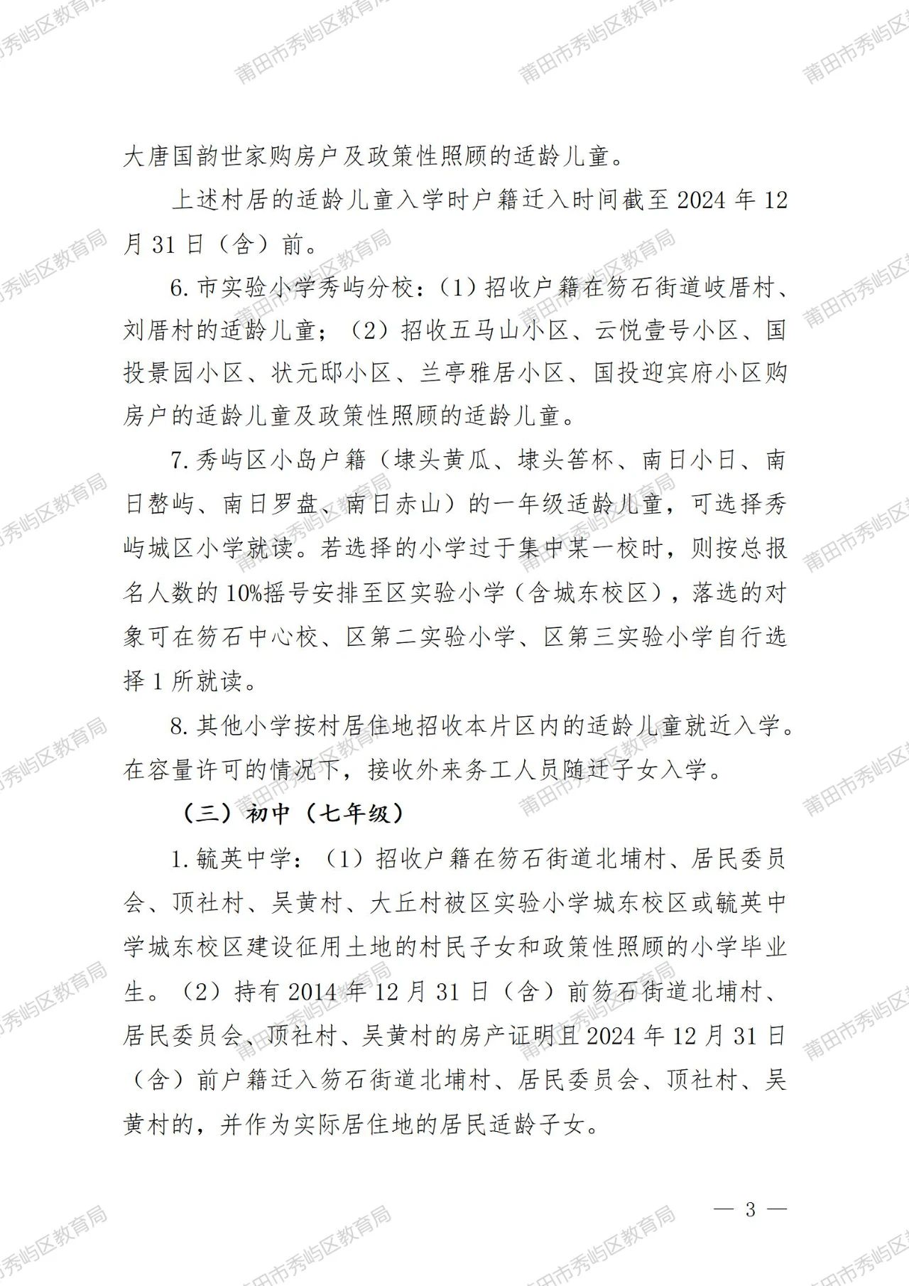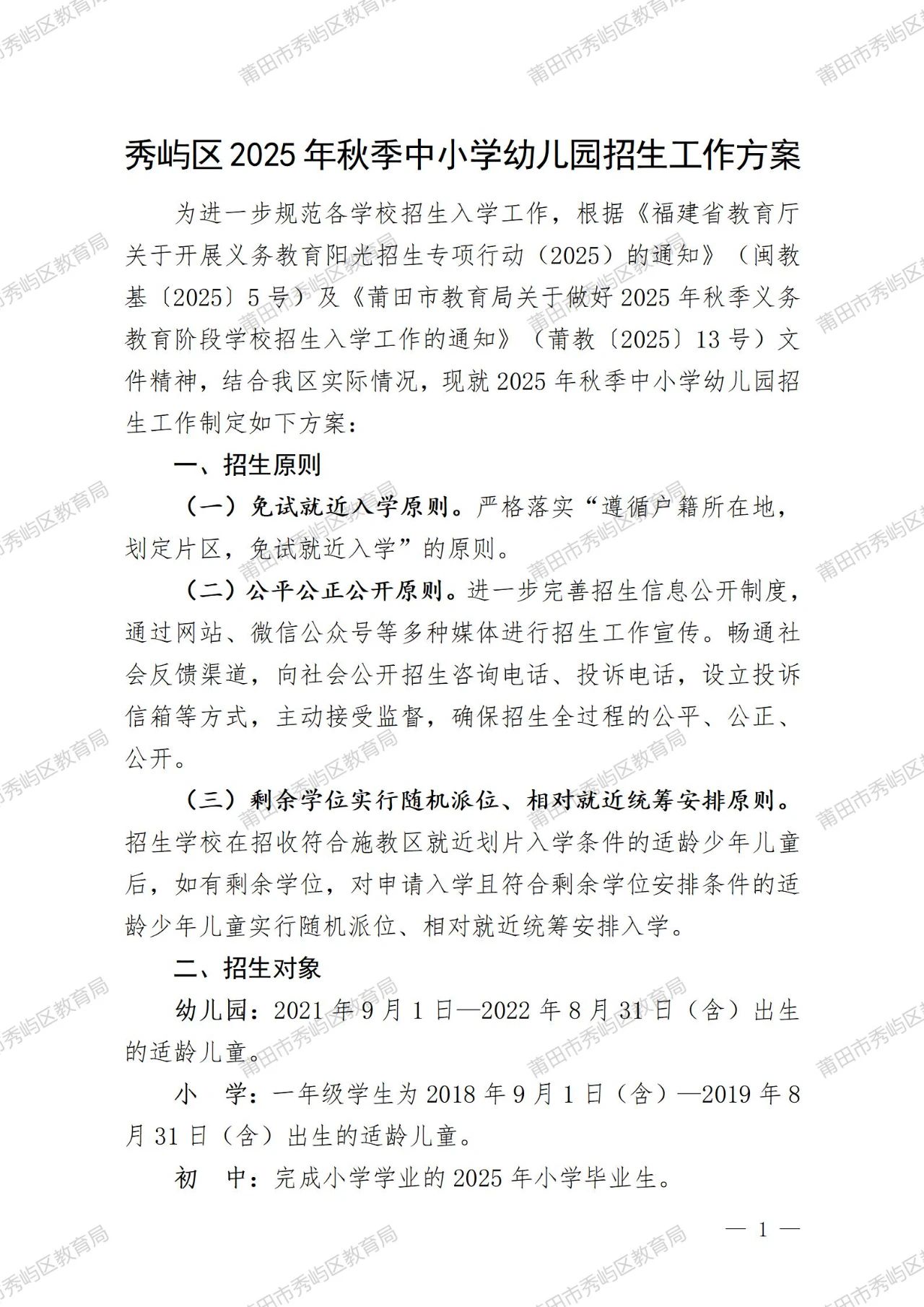 秀屿区2025年秋季中小学幼儿园招生工作方案