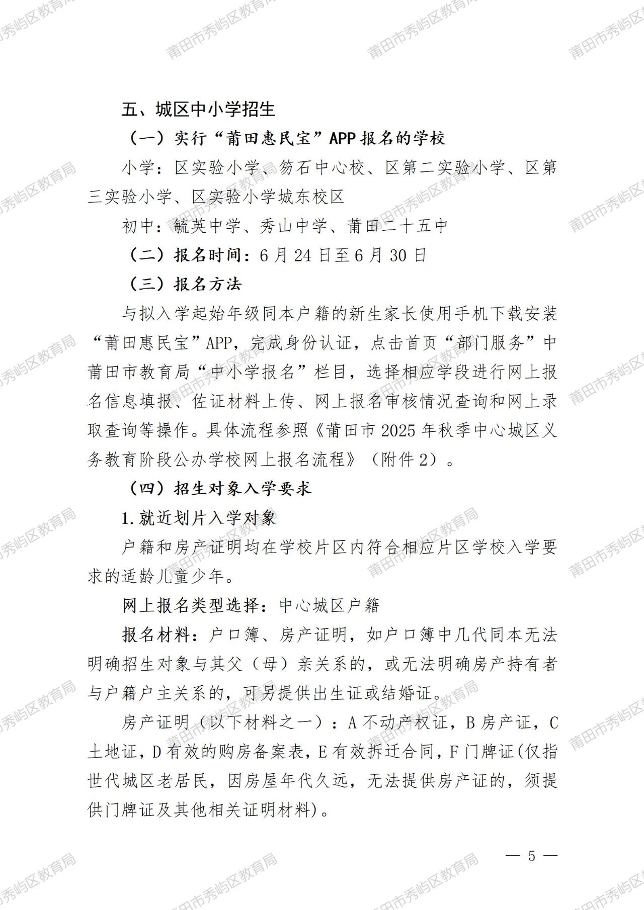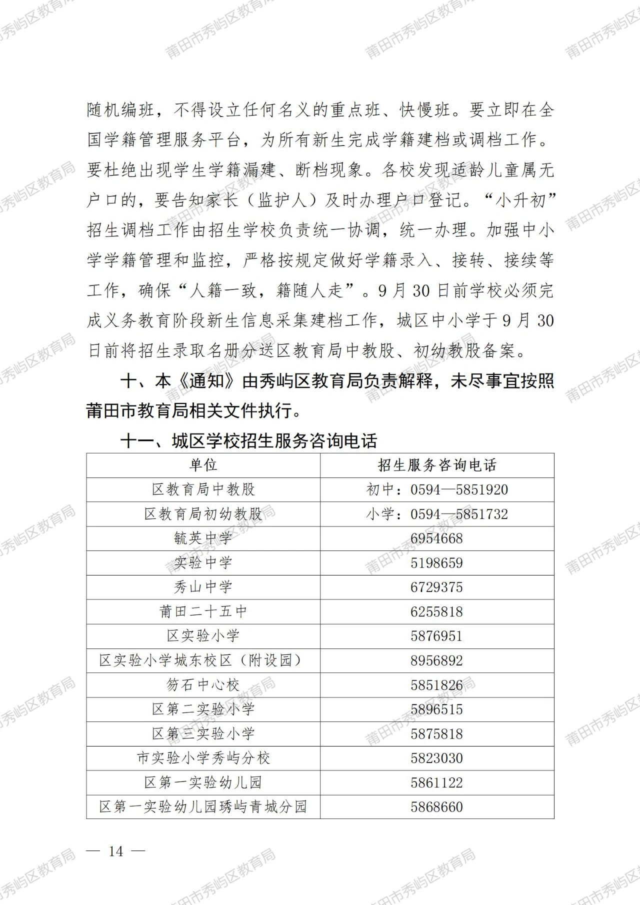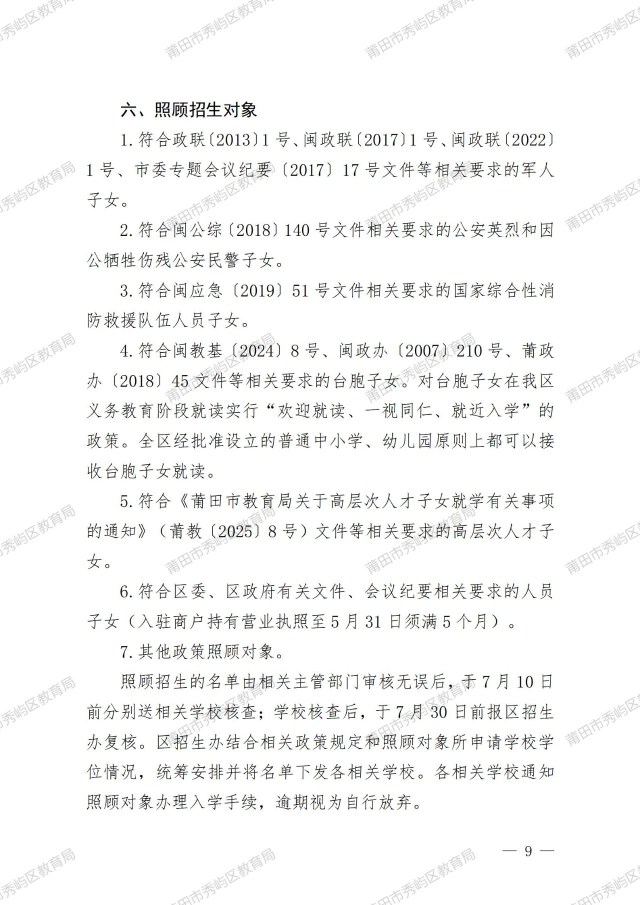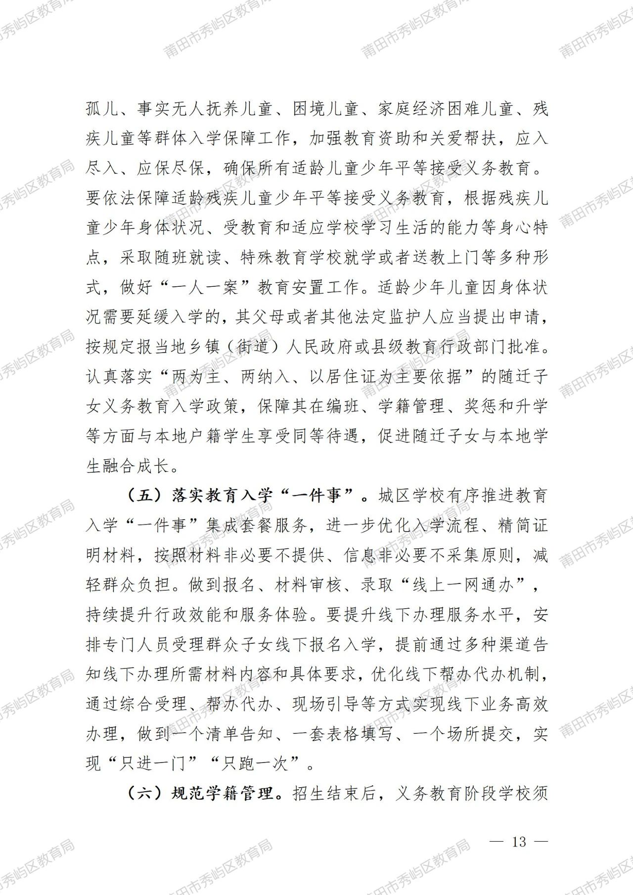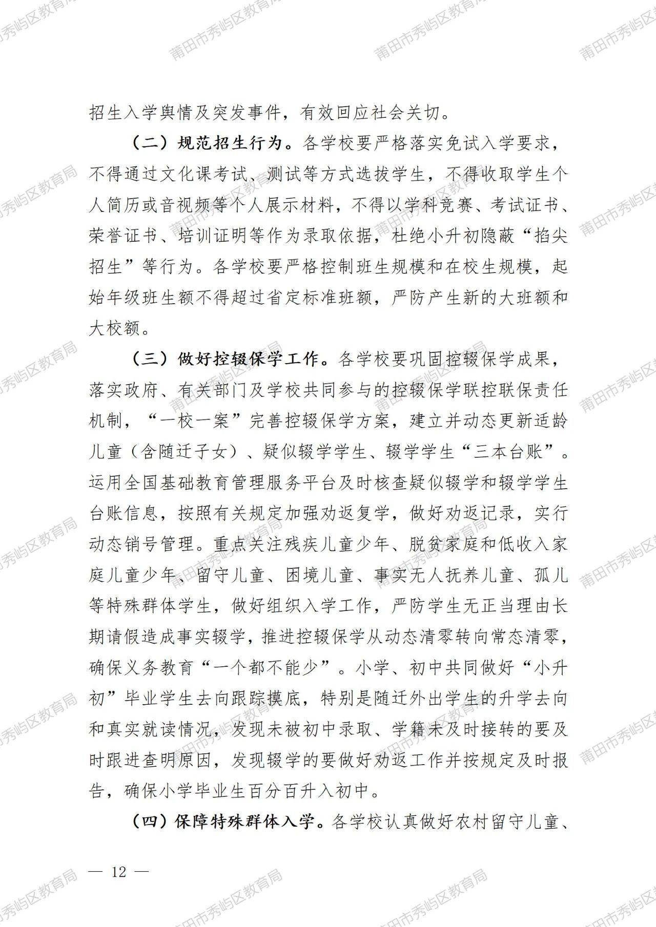 秀屿区2025年秋季中小学幼儿园招生工作方案