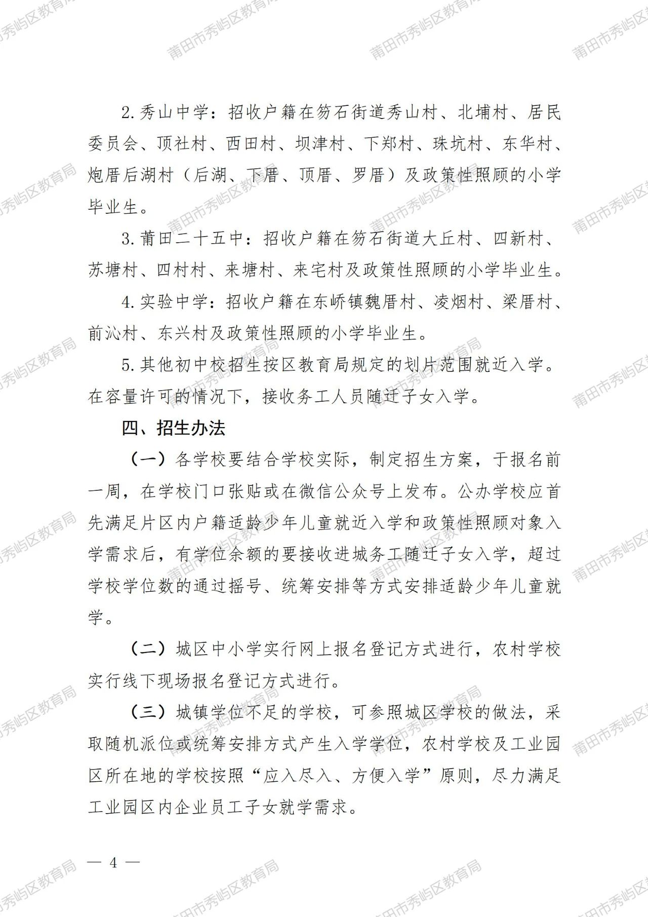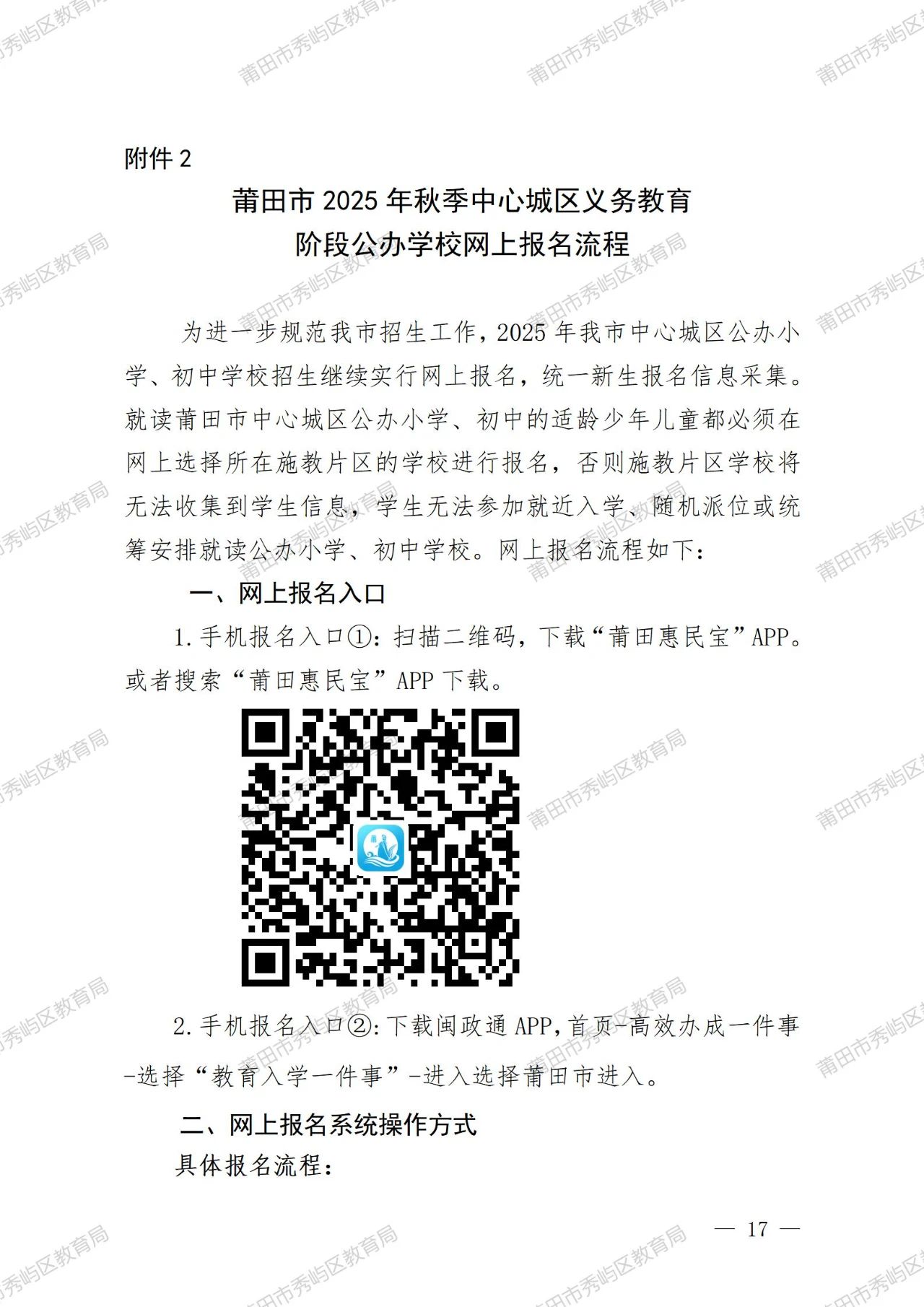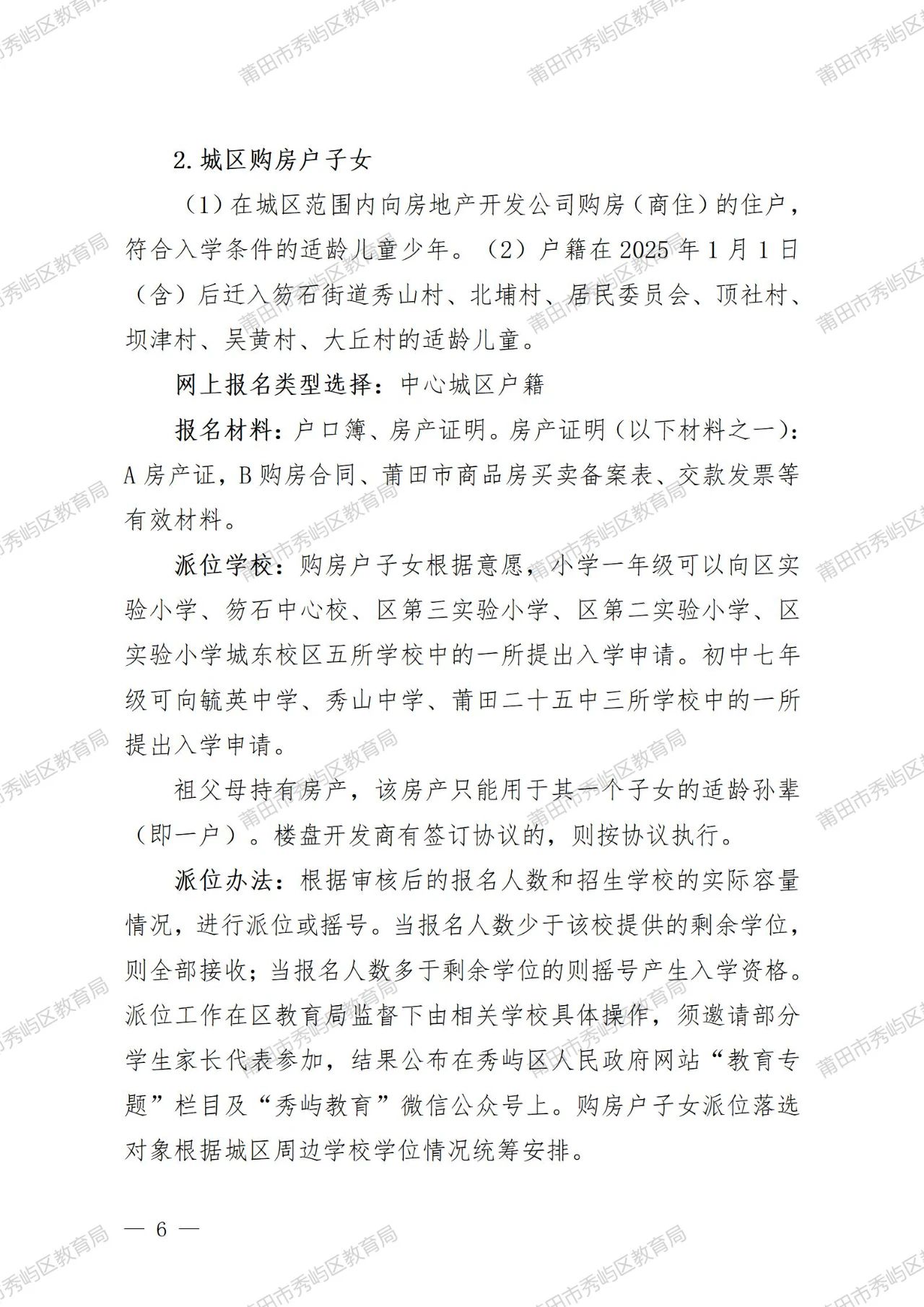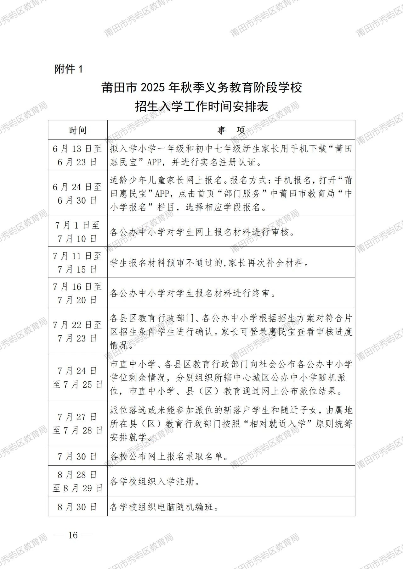 秀屿区2025年秋季中小学幼儿园招生工作方案