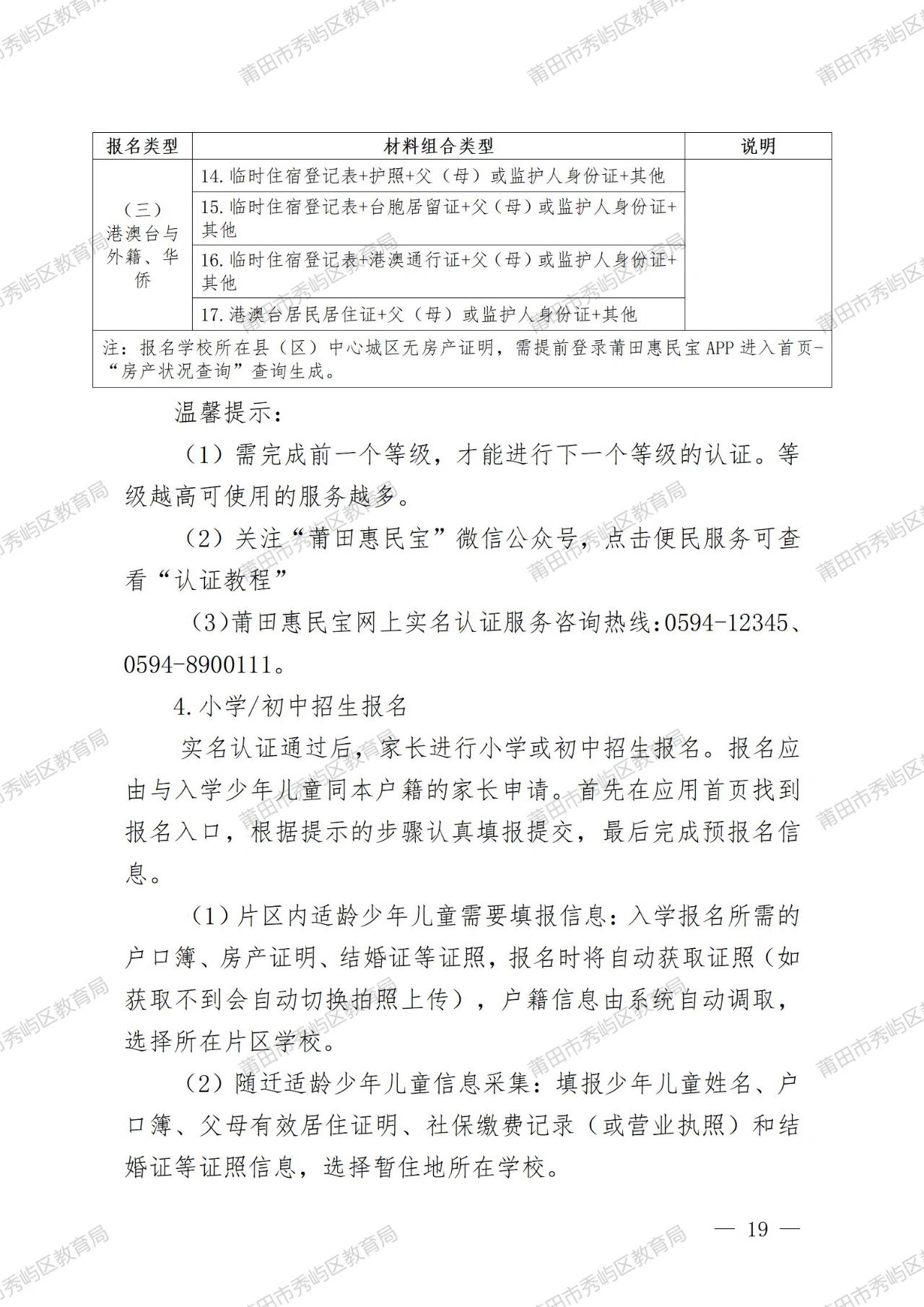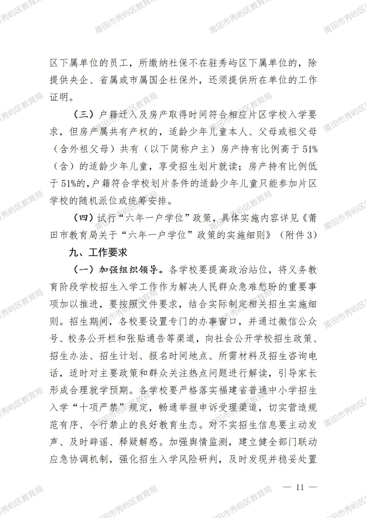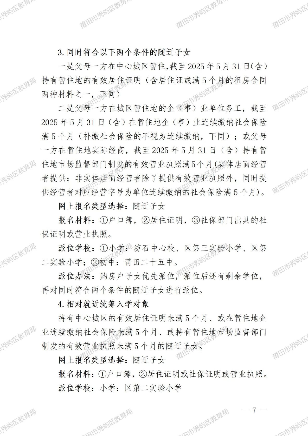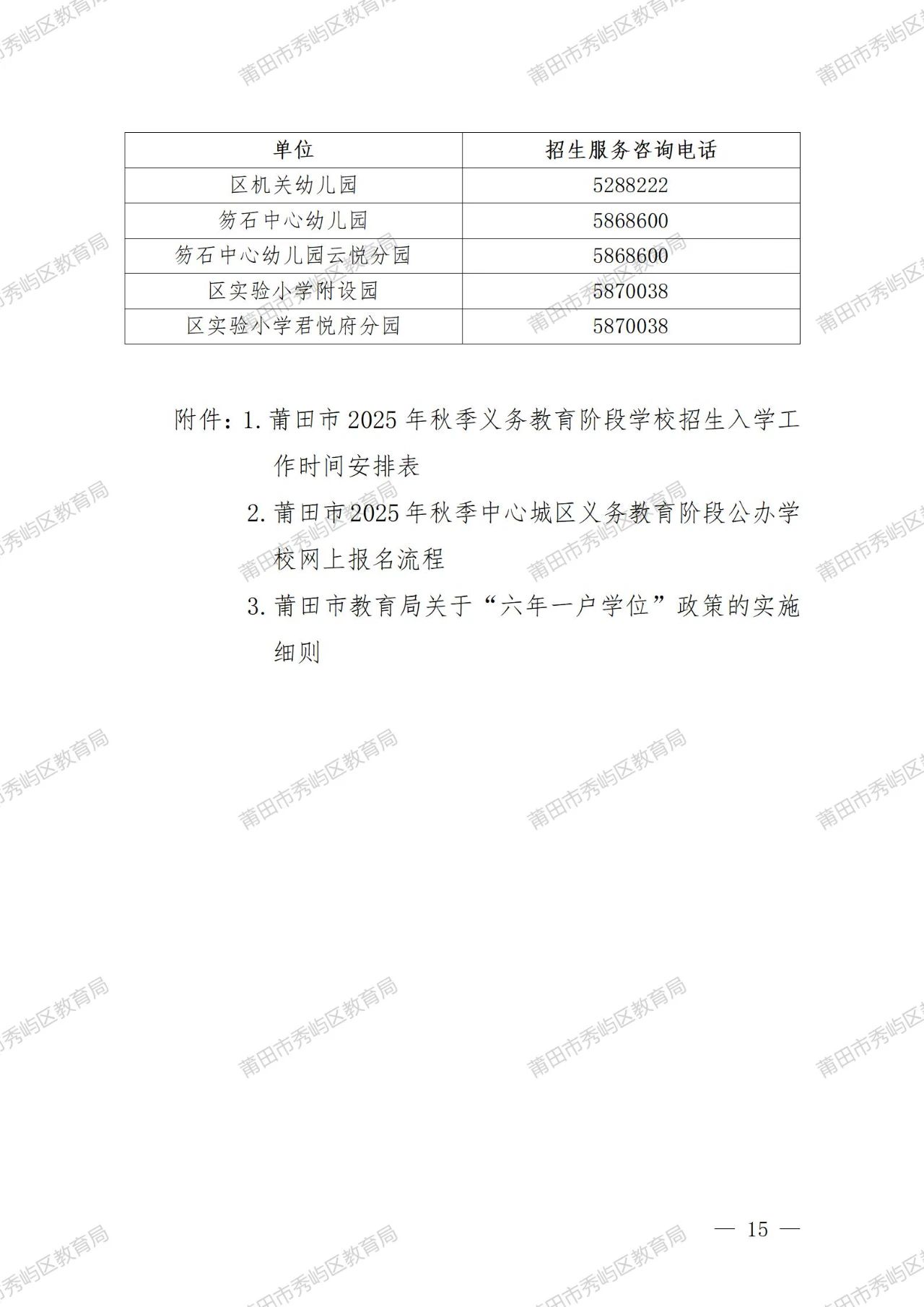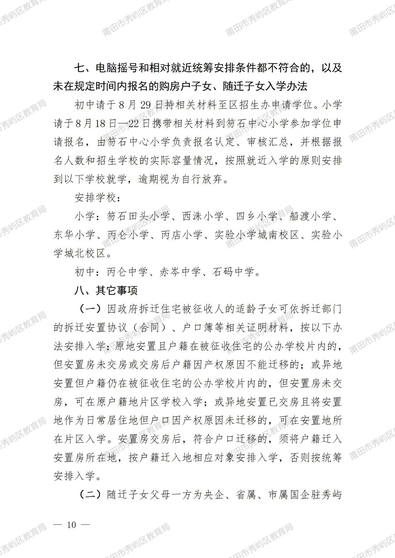 秀屿区2025年秋季中小学幼儿园招生工作方案