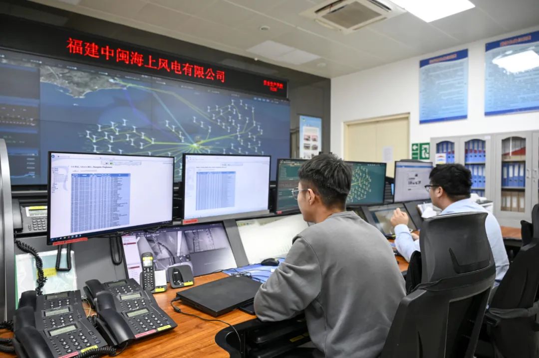 在中闽海电公司主控楼,运维人员监测海上风机状态